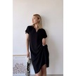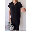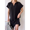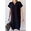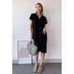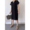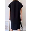 Kadın Siyah Kısa Kol, Polo Yaka, Dokulu Desen, Basic Kalıp/kesim, Aerobin Rahat Midi Elbise Siyah