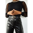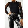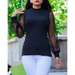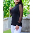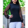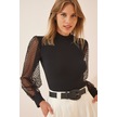 Kadın Siyah Kolu Tül Detaylı Yarım Balıkçı Kaşkorse Bluz 6160 Haki
