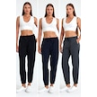 Kadın Siyah-lacivert-antrasit Pamuklu Kalın Paçası Lastikli Yüksek Bel Rahat Jogger 2'li Eşofman Altı Çok Renkli