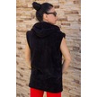 Kadın Siyah Peluş Kalın Fermuarlı Kapüşonlu Yelek 23kylkmy01 001