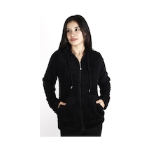 Kadın Siyah Peluş Yumoş Fermuarlı Kapüşonlu Cepli Welsoft Ceket 22kckteres 001