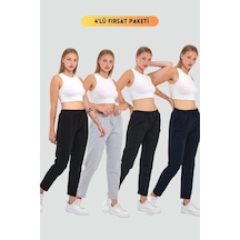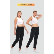 Kadın Siyah Regular Fit Düz Paça Beli Lastikli Bağcıklı Eşofman Altı Siyah
