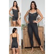 Kadın Siyah Renkli Puantiyeli Dantel Detaylı Şortlu Ve Taytlı Pijama Takımı 3'lü Set 75004 Siyah