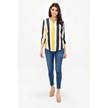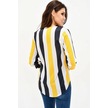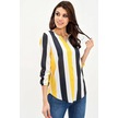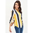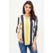 Kadın Siyah & Sarı Yakası Yırtmaçlı Çizgili Krep Bluz Truvakar Kol Kaliteli Dokulu Kumaş Siyah - Sarı