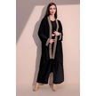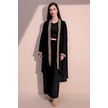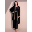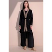 Kadın Siyah Şık Hasır Detaylı Kuşaklı Salaş Kimono - Tesettüre Uygun Siyah