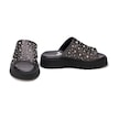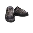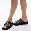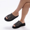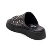 Kadın Siyah Simli Hakiki Deri Taşlı Yumuşak Kalın Tabanlı Terlik