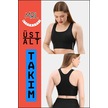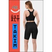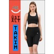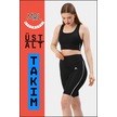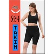 Kadın Siyah Takım Alt-üst Kısa Şort-tayt Ve Pedli Sporcu Büstiyer 2li Set Beyaz Biyeli Siyah Beyaz