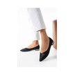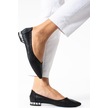 Kadın Siyah Topuk Taş Detaylı Babet Siyah Çizgili