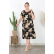Kadın Siyah Vizon Floral Desen Midi Elbise Siyah