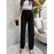 Kadın Siyah Yüksek Bel Fitilli Bol Paça Günlük İnce Eşofman Altı
