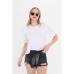 Kadın Siyah Yuvarlak Yaka Regular Fit Normal Kesim T-shirt Tişört Beyaz