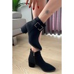 Kadın Siyah Zümrüt 6 Cm Topuklu Sivri Burun Bot Siyah