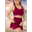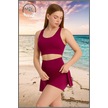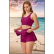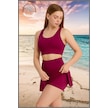 Kadın Şort Etekli Mayo Takım Üst Crop Sabit Pedli Çabuk Kuruyan Kumaş Plaj Giyim Mürdüm Takım Mürdüm