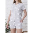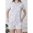 Kadın Şortlu Pijama Takımı Düğmeli Kısa Kollu Pamuklu Cepli Likralı Gri Gri