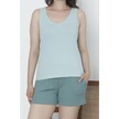 Kadın Şortlu Pijama Takımı Geniş Askılı Likrali Cepli Kaşkorse Şort Yeşil Yeşil