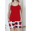 Kadın Şortlu Pijama Takımı İp Askılı Pamuklu Likralı Cepli Kırmızı Nıc1073 R02 Kırmızı