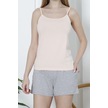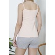 Kadın Şortlu Pijama Takımı İp Askılı Pamuklu Likralı Cepli Somon Nıc1073 R20 Somon
