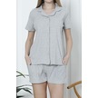 Kadın Şortlu Pijama Takımı Kısa Kollu Kaşkorse Salaş Cepli Gri Nıc1070 R09 Gri