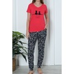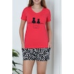 Kadın Şortlu Ve Uzun Pijama Takımı Kısa Kollu 3 Lü Set Likralı Cepli Nar