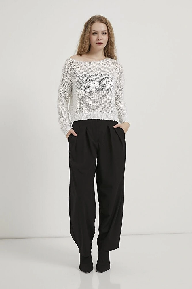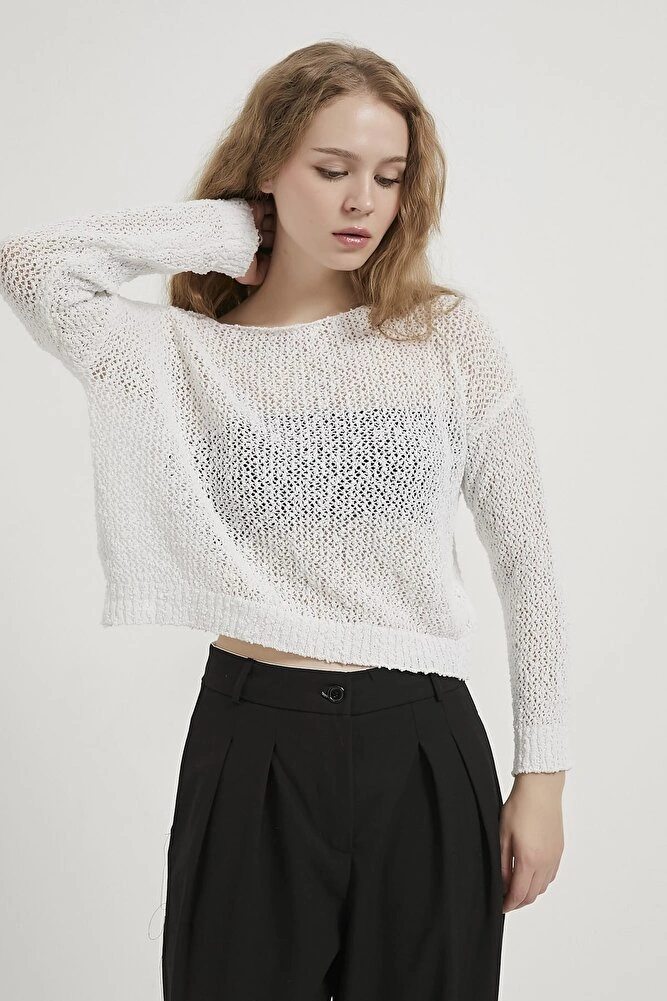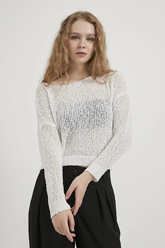 Kadın Standart Beden Düşük Omuz Transparan Şık Ve Zarif Tasarım Triko Kazak Çok Renkli
