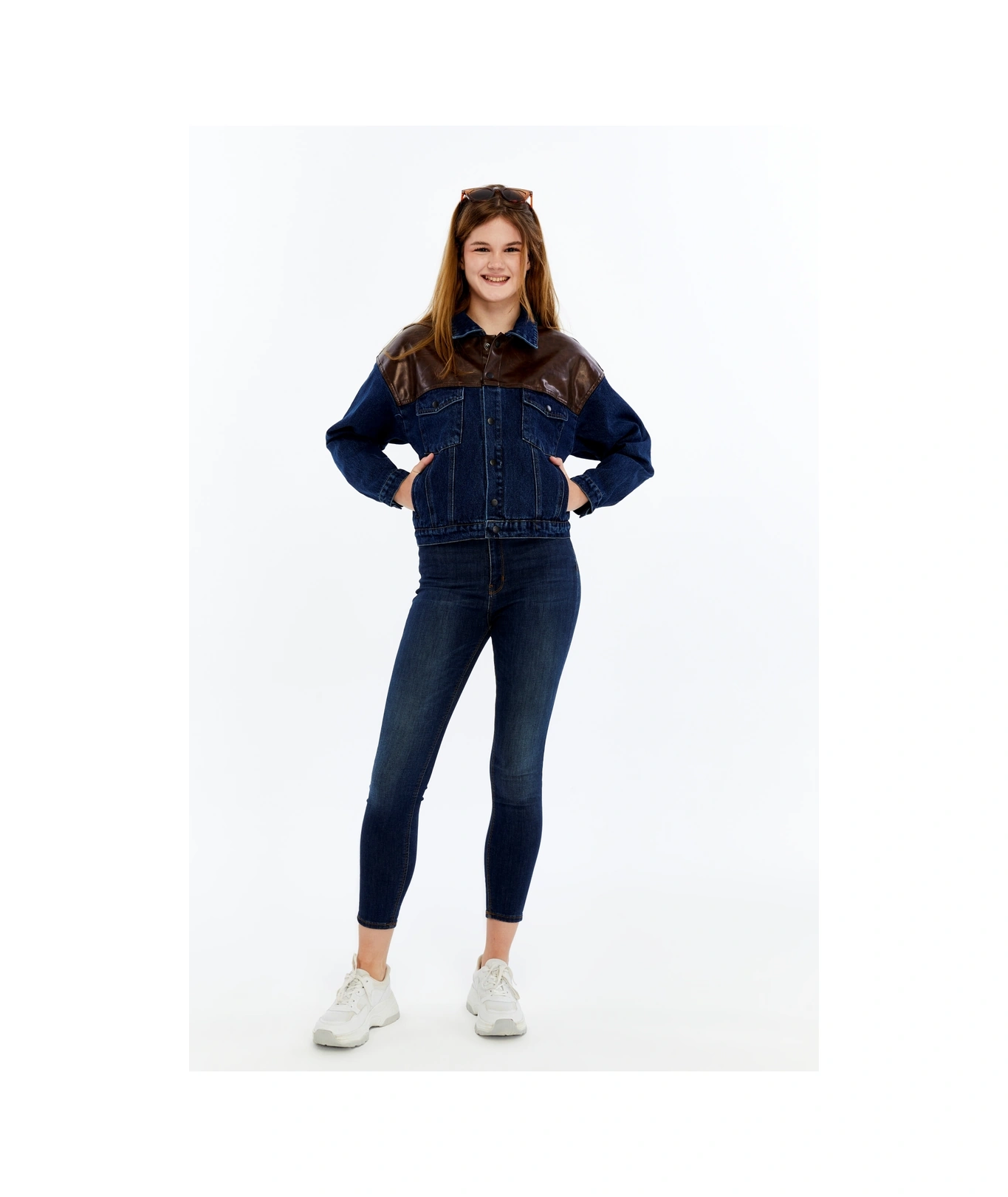 Kadın Standart Kot Ceket Deri Niş Özgün Tasarım Günlük Sokak Sitili Model Bomber Mont Kolej Ceket Kahverengi