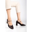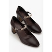 Kadın Stiletto Topuklu Ayakkabı Kahve Suni Deri Baret Taşlı Kalın Topuklu-4172 Kahve