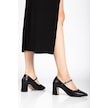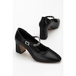 Kadın Stiletto Topuklu Ayakkabı Siyah Suni Deri Baret Taşlı Kalın Topuklu-4171 Siyah
