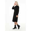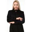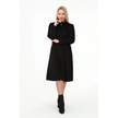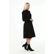 Kadın Süet Hakim Yaka Pile Detaylı Büzgülü Uzun Kol Midi Boy Kloş Kışlık Elbise 4412/110 Siyah