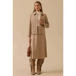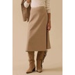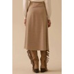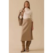 Kadın Suni Deri Biyeli Midi Etek - Bej Vizon