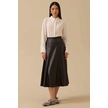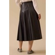 Kadın Suni Deri Kloş Etek - Siyah Siyah