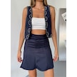 Kadın Suni Süet A Kesim Esnek Mini Etek Lacivert