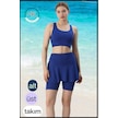 Kadın Takım Alt - Üst Biker Şort Diz Üstü &crop Bra Ped Destekli Denizde Havuzda Sporda Mavi Mavi