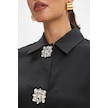 Kadın Taş Düğme Detaylı Gömlek - Siyah