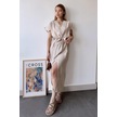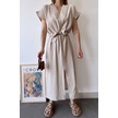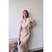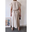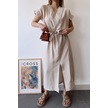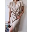 Kadın Taş Kısa Kol, V Yaka, Düz Renk Desen, Basic Kalıp/kesim, Aerobin Kumaş, Kuşaklı Maxi Elbise Taş