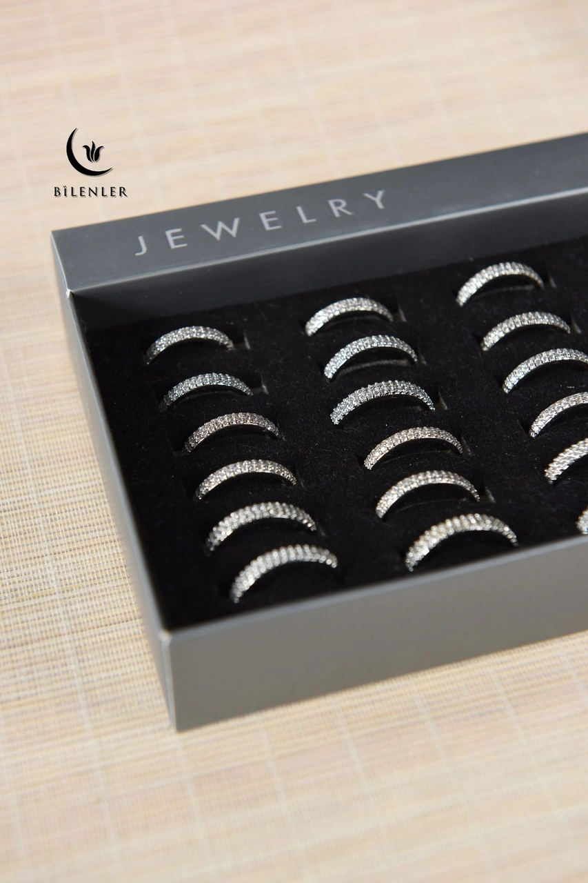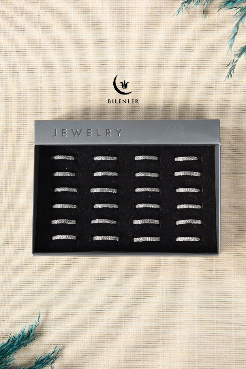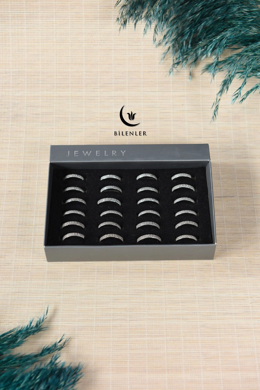 Kadın Taşlı Metal Yüzük Uzun Ömürlü,şık Tasarım 24 Lü Kutu Gümüş