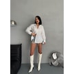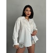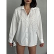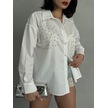 Kadın Taşlı Premium Kalite Uzun Kollu Oversize Gömlek Beyaz