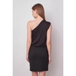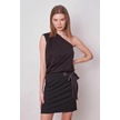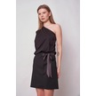 Kadın Tek Omuz Bağcıklı Likralı Kumaş Şık Diz Üstü Elbise-siyah Siyah