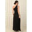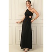 Kadın Tek Omuz Yan Pencere Detaylı Uzun Krep Saten Elbise-38275 Siyah