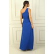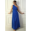 Kadın Tek Omuz Yan Pencere Detaylı Uzun Krep Saten Elbise-38765 Saks