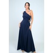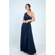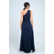 Kadın Tek Omuz Yan Pencere Detaylı Uzun Krep Saten Elbise-41546 Lacivert