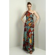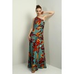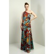 Kadın Tek Omuz Yandan Pencereli Desenli Uzun Krep Saten Elbise-40751 Mint