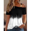Kadın Tek Omuzdan Açık Askı Detaylı Desenli Süprem Bluz Altın