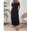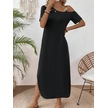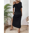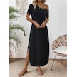 Kadın Tek Omuzdan Açık Toka Detaylı Yandan Yırtmaçlı Maksi Boy Viskon Elbise Siyah