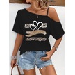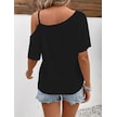 Kadın Tek Omuzu Açık Ip Askılı Baskılı Viskon Bluz Siyah