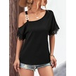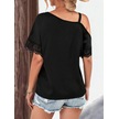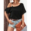 Kadın Tek Omuzu Askılı Kısa Kollu Toka Detaylı Dantelli Viskon Bluz Siyah