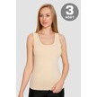 Kadın Ten Rengi Pamuklu Likralı Kalın Askılı Atlet 3'lü Paket Esnek Ve Yumuşak Kumaş Ten