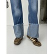 Kadın Ters Paça Püskül İşlemli Bol Paça Kot Pantolon Mavi