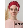 Kadın Tesettür 10'lu Fırfırlı Dikişli Bone Bordo Bordo