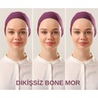 Kadın Tesettür Dikişli Set Bone Mor 3 Adet Bağlamalı Penye Bone Mor