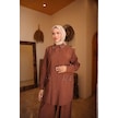 Kadın Tesettür Eşofman & Takımı, Alt Üst Uzun Takım Düğmeli Gömlek Pantolon 504 Kahverengi